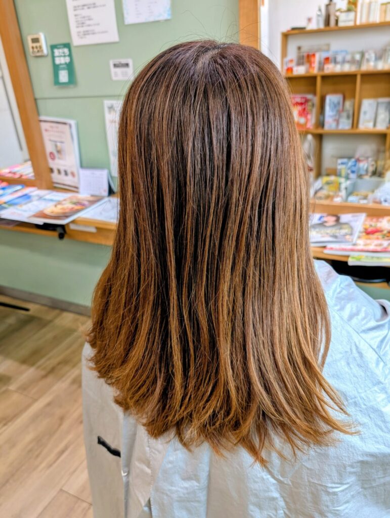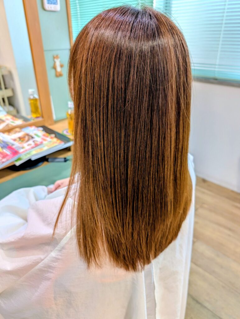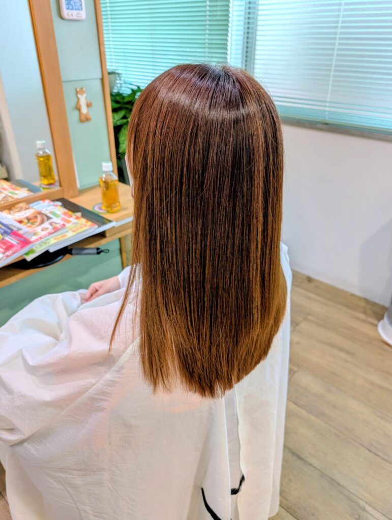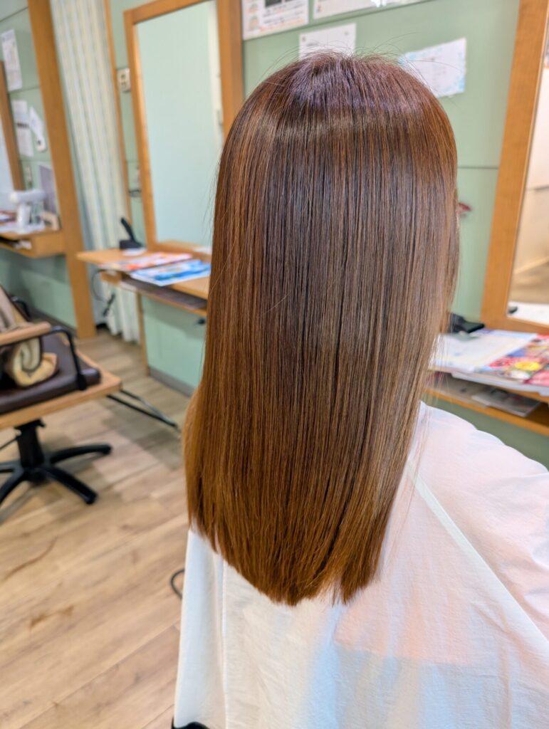 ツヤがしっかりと戻り、毛先までスッと自然にまとまりました