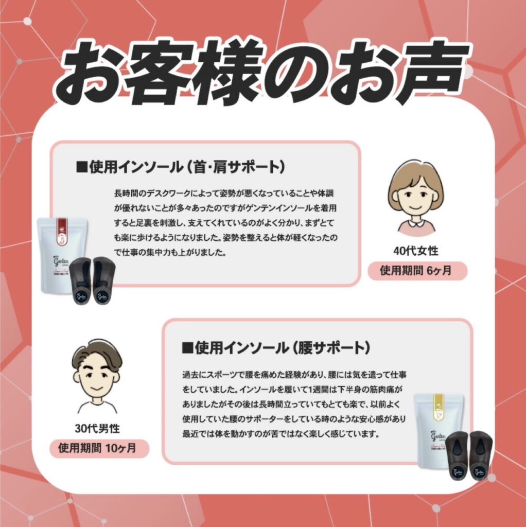今回は、一緒にインソールをご紹介している 「癒し処 縁さん」のお客様が、 ゲンテンインソールをご購入された後の とても素敵なご感想をご紹介させていただきます😊