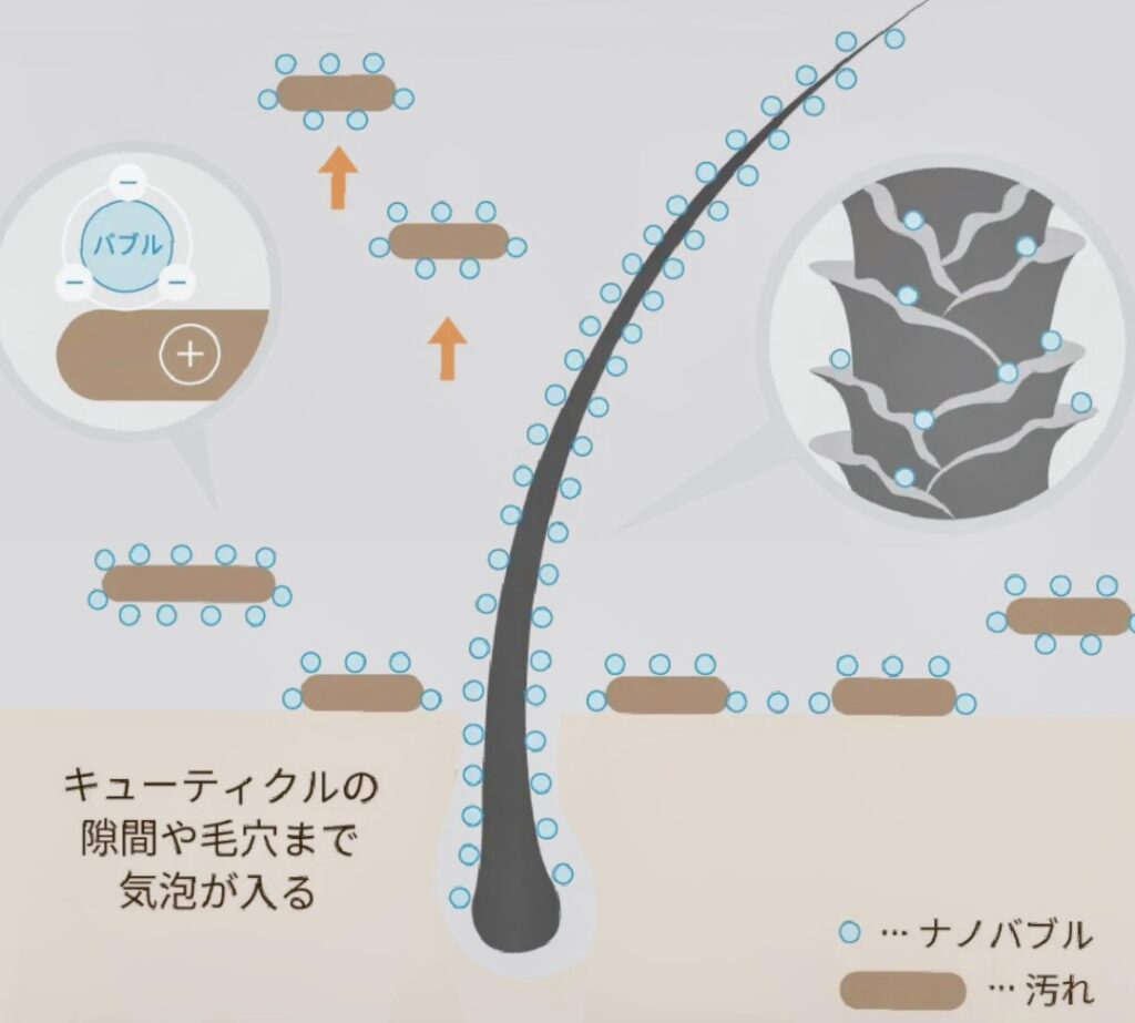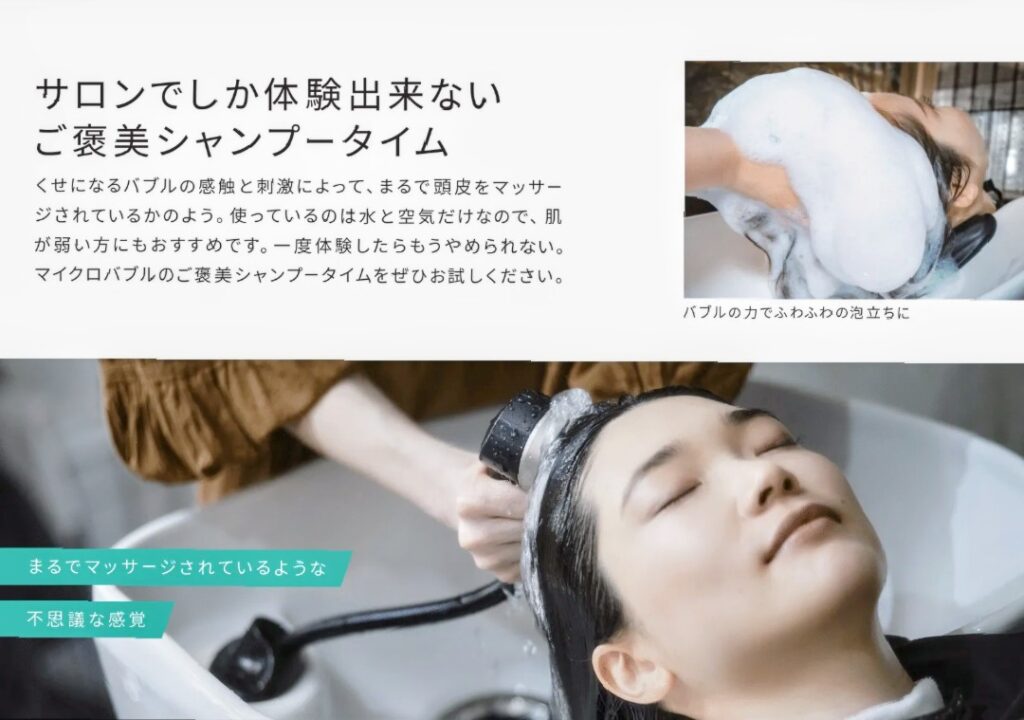 高濃度ミストで頭皮と髪を包み、クレンジング・保湿・リラックス効果が得られるマーブ