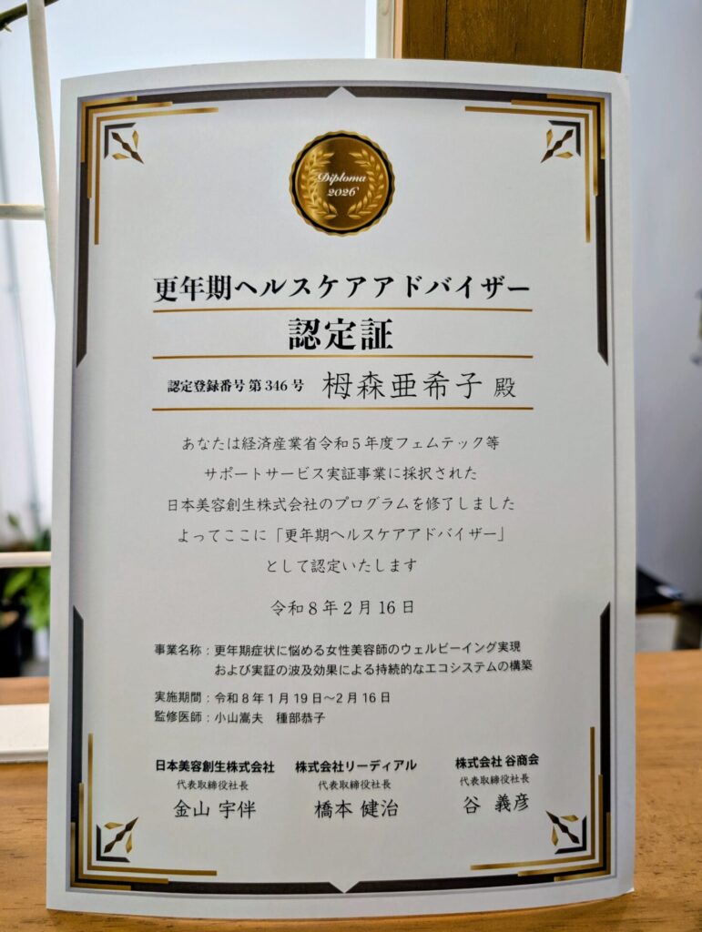 🌿 更年期ヘルスケアアドバイザー認定取得のご報告