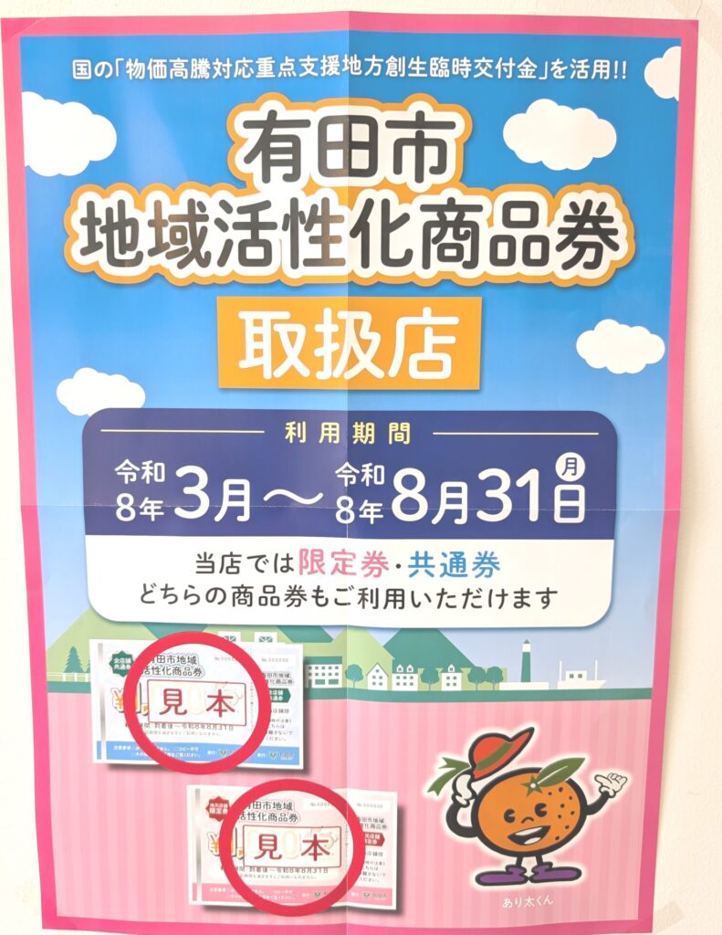3月からスタート!有田市 地域活性化商品券がご利用頂けます