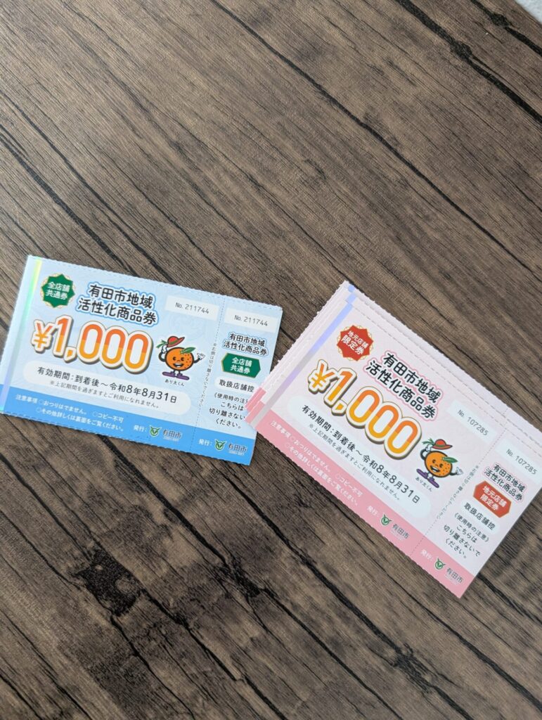 有田市の地域活性化商品券が届きはじめたタイミングで、