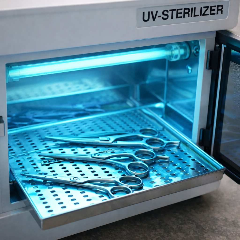 なお、ハサミなどの金属器具につきましては、 専用の紫外線消毒器を使用し、 適切な方法でしっかりと消毒を行っております
