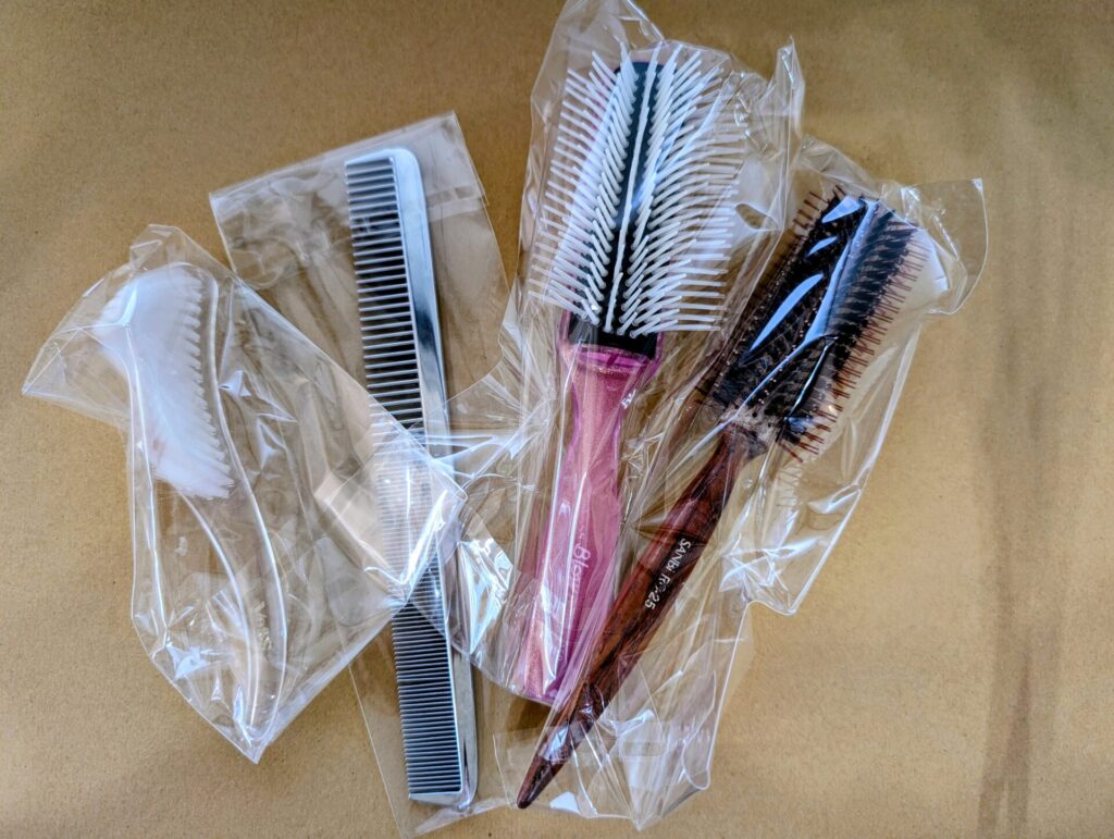 ・消毒済みのコームやブラシを入れている袋は、